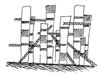 [Proyectos5] Comuna Urbana LÍNEA YURIKAMOME · ARIAKE TENNIS-NO-MORI Unidad Docente Miranda-Pina Jaime Nadal + Fernando Casqueiro Primavera2009 Se opta por una redefinicion de ‘comuna’ + ‘urbana’ independiente de como se ha tratado hasta el momento. Tratamos el concepto como una suma de individualidades independientes de cualquier orden social existente, salvo los que correspondan al problema de entorno. Se trata de crear un laboratorio experimental, una granja para seres humanos pero dentro de un entorno que ya esta establecido. El proyecto se desarrolla abarcando el área propuesta, mediante unos volúmenes verticales de uso residencial. Estos se relacionan entre sí y completan el programa de Comuna, mediante unas bandejas suspendidas, donde se encuentran los servicios y zonas comunes. |