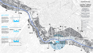 [PFC]Proyecto Final de Carrera CENTRO DE OCIO + CULTURA + TRABAJO EN MADRID RÍO Aula PFC ARKRIT Tutora Silvia Colmenares Vilata nomviembre2013 Con este proyecto se busca una solución que permita regenerar y adecuar el frente urbano de Madrid Río. Se propone la fragmentación como estrategia de proyecto, para generar un frente más variado y romper la barrera existente hoy en día. Un frente que permita la conexión entre parque y ciudad. Se desarrolla un programa de equipamientos públicos, empleando dos grupos de elementos arquitectónicos: Las Bandas, como concepto arquitectónico de muro, transversales al recorrido del parque; y las Cajas Puente, como espacios ’entre bandas’ equipados. Se ha desarrollado un programa de equipamientos públicos, de usos muy intermitente, pudiendo pasar largas temporadas sin actividad. Por ello se plantea la posibilidad de compartir estas, con un Vivero de empresas. De esta forma, se conseguiría una mayor rentabilidad de los diversos programas del proyecto. El programa se desarrolla partiendo de la idea de Bandas conectadas entre sí, a través de equipamientos. Estando estos equipamientos vinculados programáticamente con las dos bandas colindantes. |
